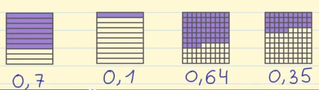 unidad en 100 partes iguales (tercer cuadrado),
