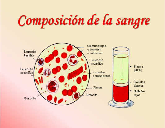 . La sangre. Está formada por un líquido denominado plasma sanguíneo y por varios tipos de elementos celulares: los glóbulos rojos, los glóbulos blancos y las plaquetas.