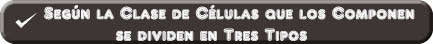 las clases de células que los componen, según su forma y por