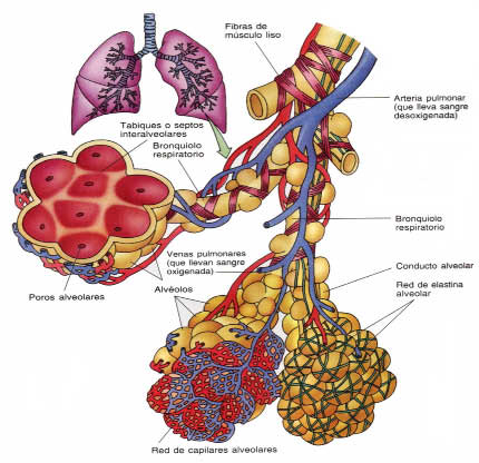 organismo. El oxígeno de los alvéolos pulmonares entra a la